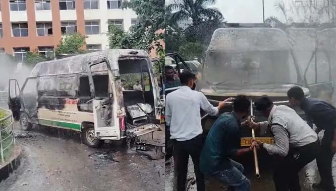 जगदलपुर : एंबुलेंस में लगी आग, मरीज को बाहर निकालकर तत्काल पहुंचाया गया अस्पताल