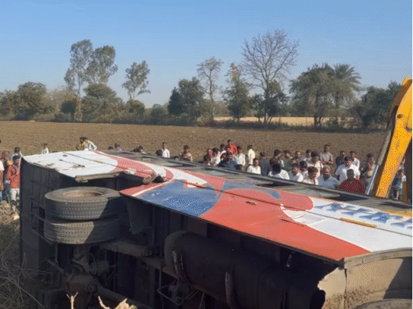 आगर मालवा में आज शनिवार सुबह निजी यात्री बस अनियंत्रित होकर पलट गई। हादसा बड़ागांव के पास हुआ। हादसे में एक बुजुर्ग की मौके पर ही मौत हो गई, जबकि 15 से अधिक यात्री घायल हो गए। बस सुसनेर से नलखेड़ा होते हुए कुरावर जा रही थी। बड़ागांव के पास सड़क पर बुजुर्ग भैंस लेकर जा रहा था। बताया गया है कि बस चालक ने लापरवाही से वाहन चलाते हुए उसे टक्कर मार दी, जिससे उसकी की मौत हो गई। टक्कर के बाद बस अनियंत्रित होकर पलट गई। मृतक की पहचान गोकुल (55) सिंह पिता भगवान सिंह यादवके रूप में हुई है। देखिए घटनाक्रम की तस्वीरें… घायलों को बस से निकालकर अस्पताल पहुंचाया हादसे के तुरंत बाद स्थानीय लोगों ने राहत कार्य शुरू किया। उन्होंने घायलों को बस से बाहर निकाला और इलाज के लिए नलखेड़ा अस्पताल पहुंचाया। सूचना मिलने पर एडिशनल एसपी रविन्द्र कुमार बोयट और बड़ागांव चौकी प्रभारी सहित पुलिस बल मौके पर पहुंचा। पुलिस ने स्थिति को नियंत्रित किया और मामले की जांच शुरू कर दी है। बस में कुल 20 यात्री सवार थे हादसे के समय बस में लगभग 30 यात्री सवार थे। इनमें से15 यात्री घायल हो गए। घायलों को 108 और 112 एंबुलेंस की मदद से आगर मालवा जिला अस्पताल और मोहन बड़ोदिया सामुदायिक स्वास्थ्य केंद्र पहुंचाया गया। बड़ागांव चौकी प्रभारी सरदार सिंह परमार ने बताया कि बस क्रमांक MP 39 P 0265 में कुल 20 सवारी मौजूद थी जिसमें से 15 से 16 लोगों को चोट आई है सभी डायलॉग को इलाज के लिए नलखेड़ा अस्पताल भेजा गया है जहां से करीब चार गंभीर घायलों को रेफर कर जिला अस्पताल अगर पहुंचाया गया है।
