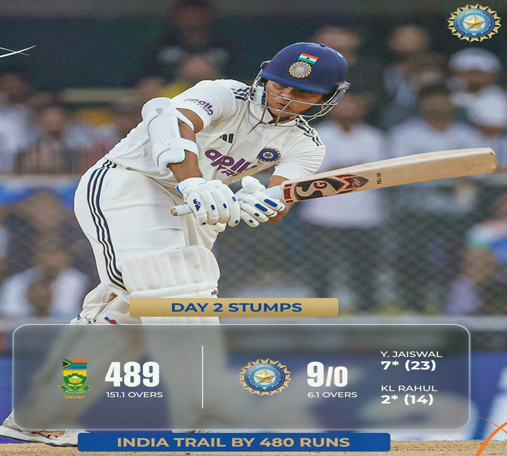 गुवाहाटी टेस्ट : दूसरे दिन का खेल समाप्त, भारतीय टीम दक्षिण अफ्रीका से 480 रन पीछे