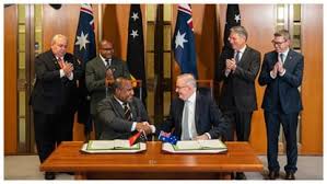 मीडिया रिपोर्ट के मुताबिक ऑस्ट्रेलिया के प्रधानमंत्री एंथनी अल्बानीज़ और पापुआ न्यू गिनी के प्रधानमंत्री जेम्स मारापे ने यहां संसद भवन में पुकपुक संधि पर हस्ताक्षर किए। संधि का मुख्य उद्देश्य दक्षिण प्रशांत क्षेत्र में चीन के बढ़ते सैन्य प्रभाव को कम करना और ऑस्ट्रेलिया के उत्तरी क्षेत्र के जरिए चीन द्वारा उसके शक्ति प्रदर्शन काे रोकना माना जा रहा है।