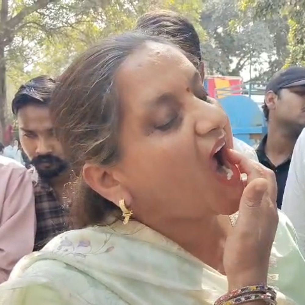 फरीदाबाद में कास्टिक सोडा खाने से दो छात्राएं बीमार:अंब विद्यालय के बाहर प्रदर्शन; बोले- भंडारे में मिस्री की जगह खिलाया
