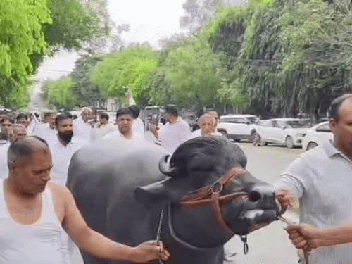 झोटा लेकर सोनीपत DC के पास पहुंचे किसान:’जाट-झोटा जहां मिलेगा, लठ मारूंगा’ कहने वाले अधिकारी पर कार्रवाई की मांग, बोले- आंदोलन करेंगे