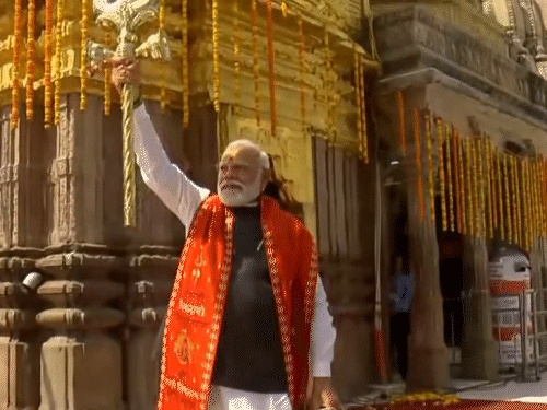 मोदी ने काशी विश्वनाथ में पूजा की, त्रिशूल लहराया:108 बटुकों ने शंखनाद किया, 14km के रोड शो में फूल बरसाए, भाजपा कार्यकर्ता नाचते दिखे
