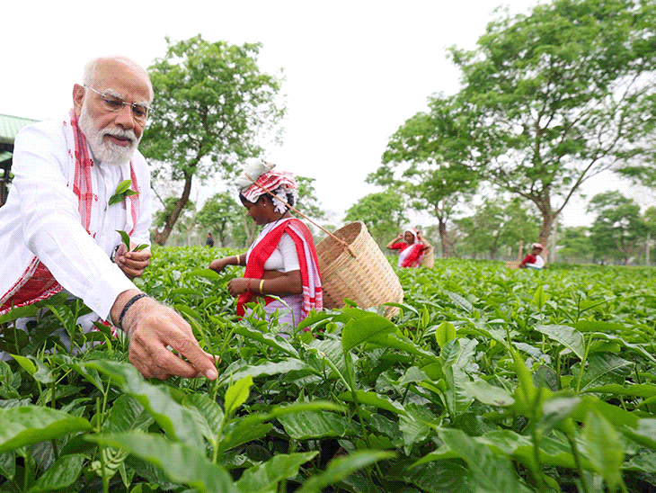 पीएम मोदी ने असम के चाय बगान में पत्ती तोड़ी:महिला कामगारों के साथ सेल्फी ली; केरलम में राहुल ने बस में सफर किया…PHOTOS