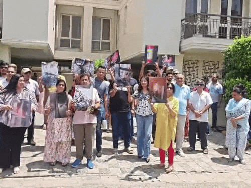 गुरुग्राम की अनंतराज सोसाइटी में फायर सिस्टम फेल:रेजिडेंट्स का प्रदर्शन, बोले- बिल्डर की लापरवाही से लोगों की जान दांव पर