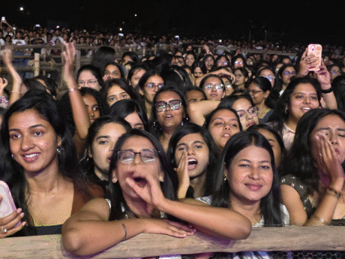 IIT BHU के टेक्नेक्स में लाइव प्रोग्राम के लिए प्रसिद्ध सिंगर दर्शन रावल पहुंचे। दर्शन रावल को सुनने के लिए एडीवी ग्राउंड का कोना-कोना भरा हुआ है। सिंगर को सुनने के लिए आईआईटी बीएचयू सहित दिल्ली, रांची, लखनऊ, कानपुर, नोएडा आदि जगहों से भावी इंजीनियर पहुंचे हैं। मंच पर दर्शन के एंट्री लेते ही स्टूडेंट्स ने जमकर सीटियां और तालियां बजाईं। कुछ लड़कियां पोस्टर लेकर पहुंची थीं। पोस्टर पर लिखा था- ए हग प्लीज, वेटिंग फार 7 ईयर। दर्शन रावल ने चोगाड़ा तारा और कमरिया गाना गाया तो ग्राउंड में मस्ती का माहौल छा गया। लोगों ने खूब डांस किया। स्टेज के पास से सेल्फी ली। दर्शन रावल ने जब रातें लंबिया-लंबिया गीत गाया तो छात्र-छात्राओं ने इन खूब डांस किया। इससे पहले स्वतंत्रता भवन में आयोजित तीन दिवसीय टेक्नेक्स – 2026 का समापन हुआ। इस कार्यक्रम के अंतिम दिन विद्यार्थियों ने विभिन्न तकनीकी गतिविधियों में भाग लिया, जिसमें रोबो सॉकर गेम का आयोजन भी शामिल था। प्रदर्शनी में बेल्ट-फेड गैस ऑपरेटेड ऑटोमेटिक सपोर्ट वेपन (7.62 एमएम एमएमजी) और ऑटोमेटिक ग्रेनेड सिस्टम (एजीएस) जैसे उपकरण शामिल थे। 3 तस्वीरें देखिए…