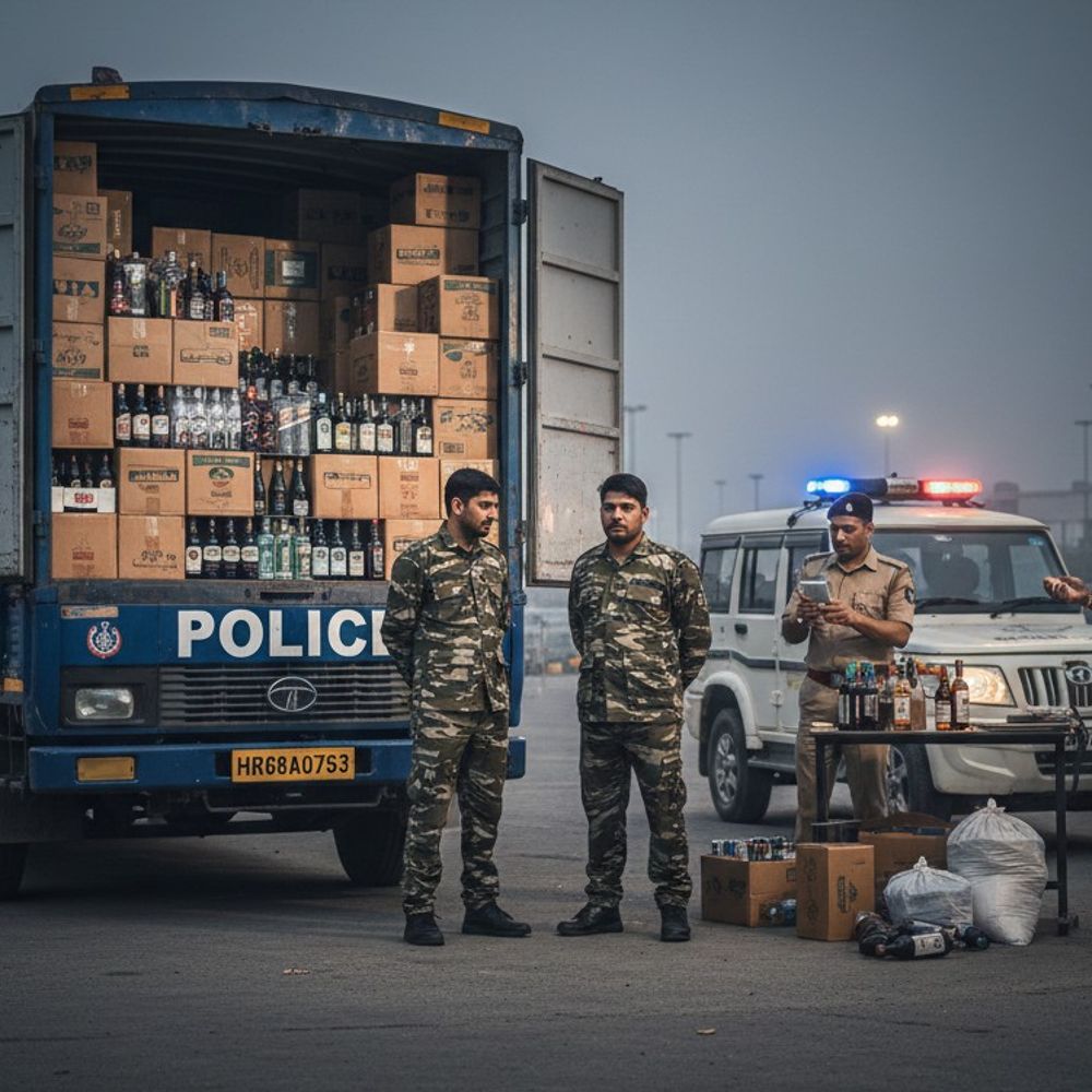 पानीपत जिला पुलिस ने अवैध शराब तस्करों के एक ऐसे गिरोह का भंडाफोड़ किया है जो सुरक्षा बलों की पहचान का गलत इस्तेमाल कर पुलिस को चकमा दे रहे थे। पुलिस ने सेक्टर 40 की पार्किंग से एक नीले रंग के कैंटर सहित दो युवकों को गिरफ्तार किया है, जो अर्धसैनिक बल (CRPF) की वर्दी पहनकर भारी मात्रा में अवैध शराब की तस्करी कर रहे थे। पकड़े गए दोनों आरोपी पानीपत के ही रहने वाले हैं। आरोपियों के खिलाफ केस दर्ज कर लिया गया है। मुखबिर की सूचना पर सेक्टर 40 में रेड मामला 18 फरवरी की शाम का है। CIA-1 के ASI अनिल कुमार की टीम टोल प्लाजा के पास गश्त पर थी, तभी मुखबिर से सूचना मिली कि दो व्यक्ति CRPF की वर्दी में नीले रंग के कैंटर (HR68A0753) में अवैध शराब लेकर सेक्टर 40 की पार्किंग में रुके हुए हैं। पुलिस ने तुरंत आबकारी निरीक्षक अरविंद डागर को सूचित किया और संयुक्त रूप से पार्किंग में छापेमारी की। CRPF की वर्दी और नकली आईकार्ड का खेल कैंटर के पास पहुंचने पर पुलिस ने देखा कि आगे ‘पुलिस’ लिखा हुआ था और अंदर दो व्यक्ति अर्धसैनिक बल की वर्दी पहनकर आराम कर रहे थे। तलाशी लेने पर उनके पास से राजिन्द्र सिंह और सुखविन्द्र सिंह के नाम वाले CRPF के पहचान पत्र बरामद हुए। पूछताछ में हुआ बड़ा खुलासा गहनता से पूछताछ करने पर पता चला कि दोनों पहचान पत्र फर्जी थे। आरोपियों की असली पहचान मोनू (निवासी गांव खोजकीपुर, थाना बापौली, पानीपत) – यह राजिन्द्र सिंह बनकर बैठा था। संदीप (निवासी गांव आटा, थाना समालखा, पानीपत) – यह सुखविन्द्र सिंह बनकर बैठा था। आरोपियों ने कबूल किया कि वे पुलिस और जनता को धोखा देने के लिए फर्जी आईकार्ड और वर्दी का इस्तेमाल करते थे ताकि रास्ते में कोई उन पर शक न करे। 502 पेटी शराब बरामद जब आबकारी निरीक्षक की मौजूदगी में कैंटर का पिछला डाला खुलवाया गया, तो पुलिस के होश उड़ गए। कैंटर में भारी मात्रा में अंग्रेजी शराब और बीयर भरी हुई थी। खास बात यह है कि आरोपियों ने तस्करी के सबूत मिटाने के लिए बोतलों से बैच नंबर हटा दिए थे। कानूनी कार्रवाई पुलिस ने अवैध शराब, कैंटर, फर्जी आईकार्ड और वर्दी को कब्जे में ले लिया है। आरोपियों के खिलाफ Excise Act की धारा 61/4/20 और भारतीय न्याय संहिता (BNS) की विभिन्न धाराओं 318(4), 338, 336(3), 340(2), 319(2) के तहत मामला दर्ज किया है। पुलिस अब यह पता लगाने में जुटी है कि यह शराब कहाँ से लाई गई थी और कहां सप्लाई होनी थी।
