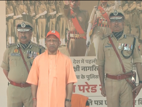 योगी ने परेड में महिला जवानों की सलामी ली:यूपी पुलिस को 60 हजार सिपाही मिले, खुली जिप्सी में CM ने निरीक्षण किया